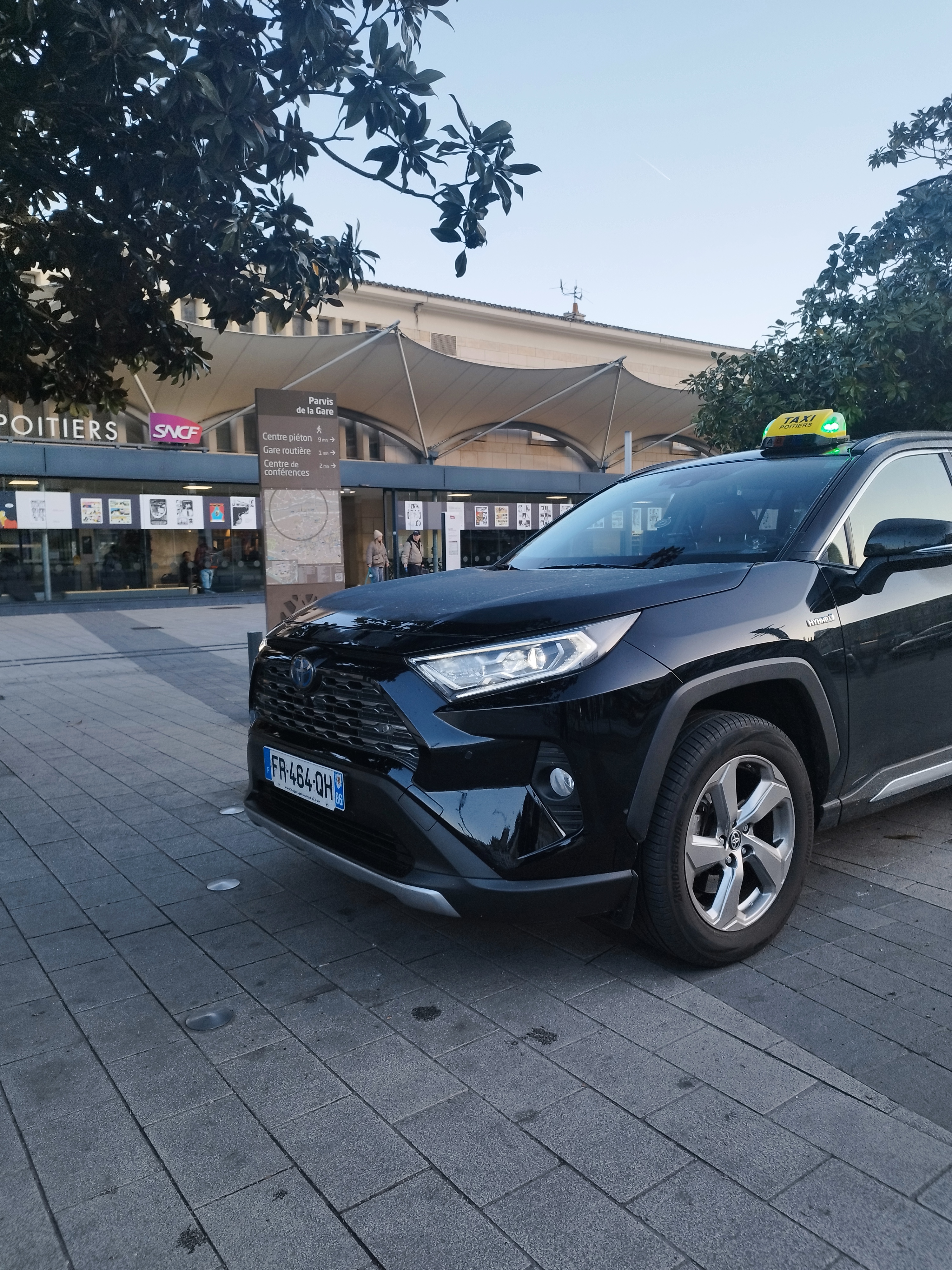 Voici le Taxi numéro 33 de la ville de Poitiers, un Toyota RAV4 de 2023, un véhicule Hybride, 5 places avec un grand volume pour tous vos bagages. Petite anecdote, c’est un véhicule qui a été utilisé lors des Jeux Olypiques de Paris 2024
